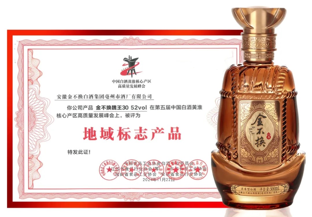 金不換酒榮獲第五屆中國白酒黃淮核心產(chǎn)區(qū)“地域標(biāo)志產(chǎn)品”